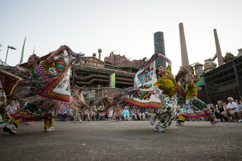 Dans R·ONDE·S, tout tourne autour de cette figure immémoriale de la danse qui donne son nom à cette proposition chorégraphique. Entre regards et contacts physiques ininterrompus, la ronde permet une communication directe. Chacune et chacun s’empare de cette figure familière pour évoluer en suivant un rythme commun. Les 19 et 20 juin 2025, à travers ce rituel universel et intemporel, des danseuses et danseurs professionnels ont invité à une redécouverte du Patrimoine Mondial Völklinger Hütte. Le public a également pu entrer dans la ronde pour abolir les frontières entre danseurs et invités : une évidence, puisqu’il en va de la plus populaire et de la plus connue des figures de danse !