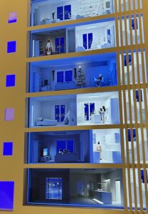 Diese nachgebildeten Welten werden durch Drehscheiben, subtile Beleuchtungen und Videoprojektionen zum Leben erweckt und schaffen eine immersive und poetische Szenografie.