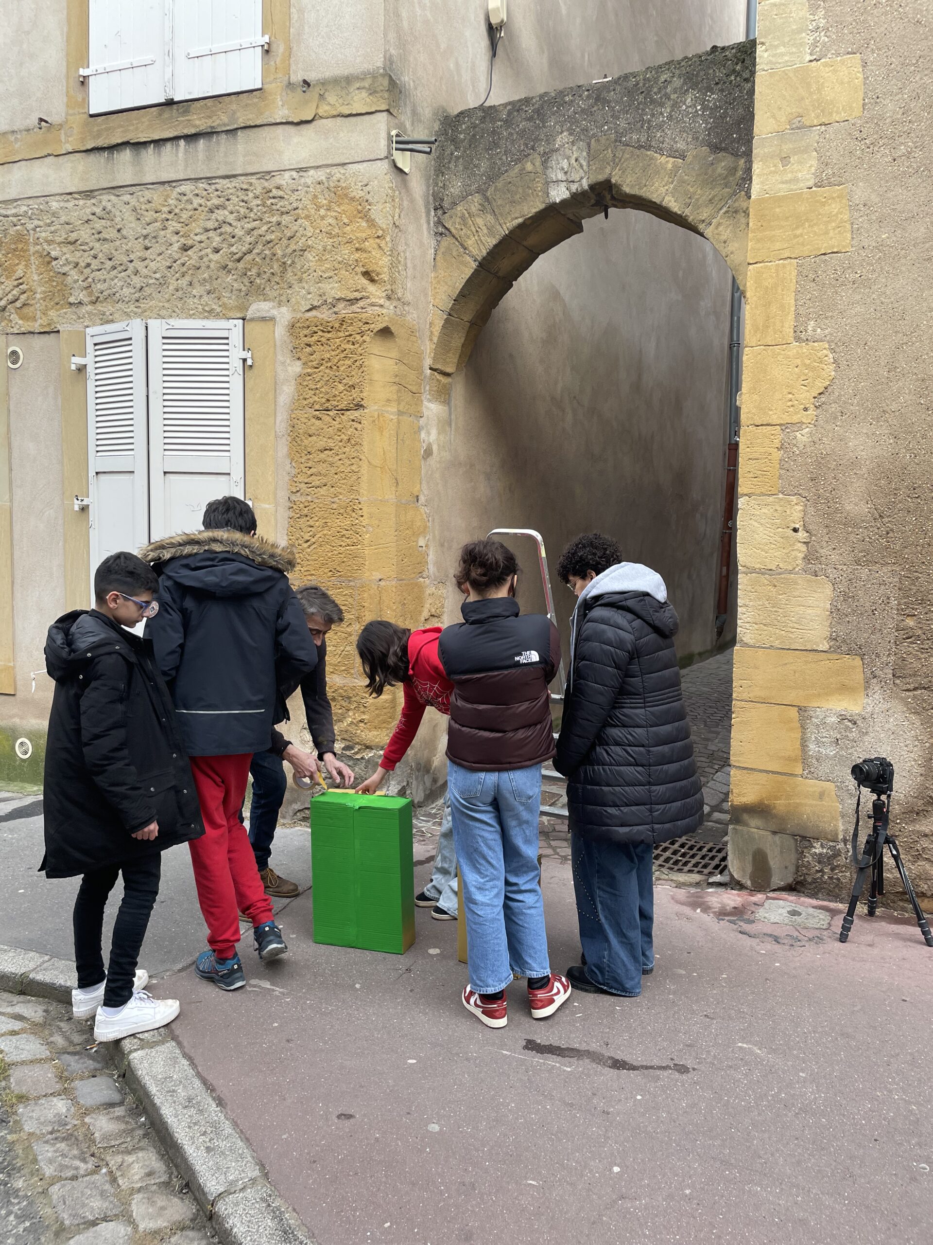 Im Februar 2025 nahmen dreizehn Jugendliche des soziokulturellen Zentrums Arc-en-Ciel in Metz an einem Workshop mit OX teil. Gemeinsam erkundeten sie das Viertel Outre-Seille auf der Suche nach geeigneten Orten für ihre künstlerischen Interventionen. Ausgehend von diesen Entdeckungen entwickelten sie ihre eigenen Werke, die in direkter Verbindung zu den gewählten Standorten standen. Nach mehreren kreativen Einheiten wurden fünf Projekte umgesetzt und anschließend im öffentlichen Raum installiert.