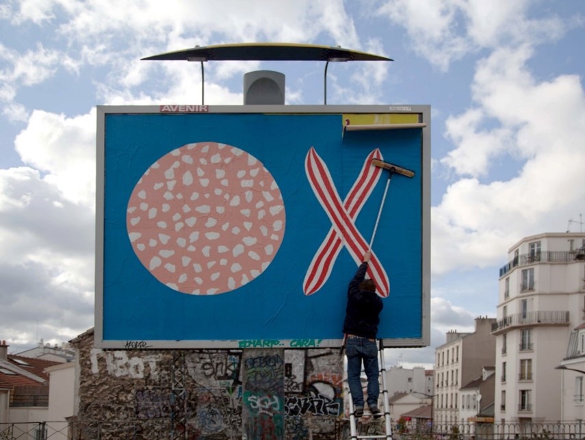 Obwohl er als Pionier der urbanen Kunst anerkannt ist, ist er vor allem ein Künstler auf der Suche nach einer authentischen Verbindung zu seiner Umgebung. Seine Kreationen, oft Wildplakatierungen, mischen Abstraktion, Figuration und Werbung, neu interpretiert, um mit der Architektur, der Vegetation und den Infrastrukturen um ihn herum zu interagieren. Seine Interventionen beschränken sich nicht auf das Medium: Die Fotografie seiner Werke offenbart einen subtilen Dialog zwischen dem Ort und dem Off-Site, dem Feld und dem Off-Feld. Durch ein Spiel mit visuellen Referenzen und große Ausdrucksfreiheit macht OX Kunst zu einer durchdachten, ungezügelten und stets humorvollen Erfahrung.
