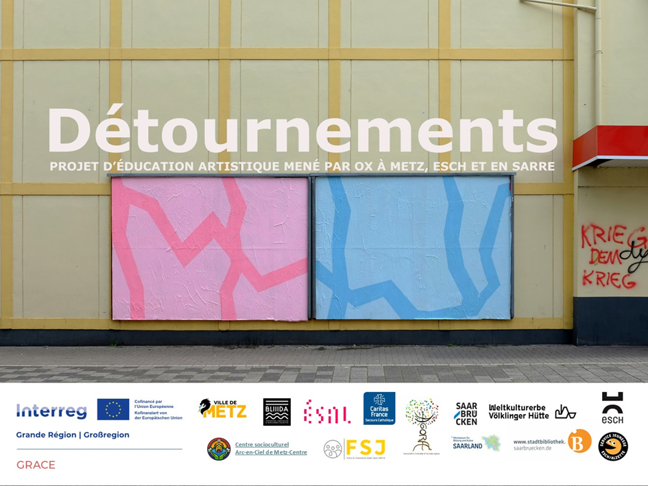 Von Herbst 2024 bis Frühjahr 2025 lädt die Stadt Metz zum Projekt Détournements ein – einem kunstpädagogischen Vorhaben rund um die kreative Aneignung des öffentlichen Raums durch Street Art. Auf dem Programm stehen Besuche herausragender Orte urbaner Kunst in der Großregion, praxisorientierte Workshops mit dem Künstler OX sowie eine abschließende Ausstellung der entstandenen Werke im Sommer 2025 in Metz.