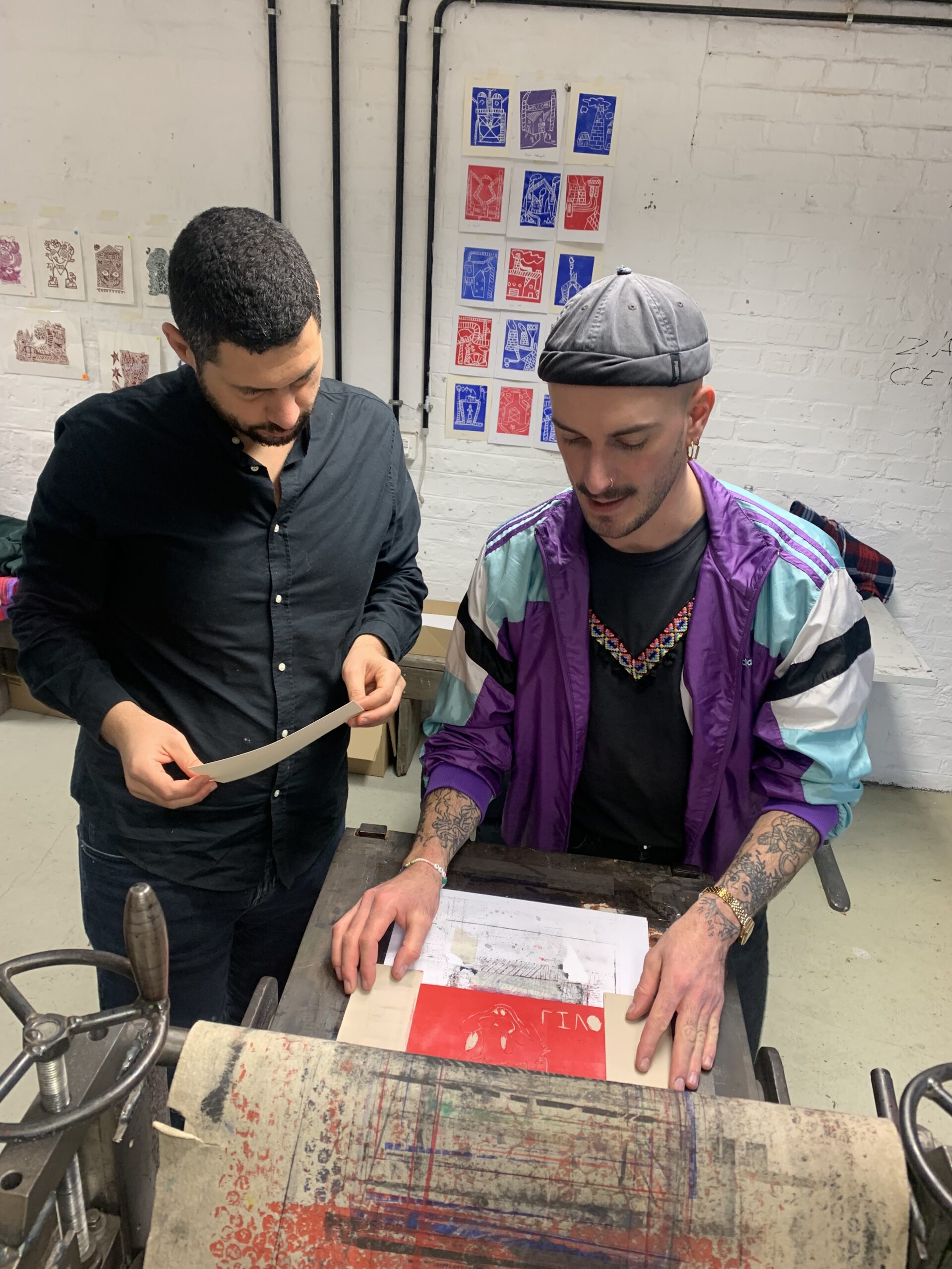 Siebdruck ist ein manuelles Druckverfahren, das dem Schablonendruck ähnelt. Jo griff daher auf seine zu Beginn der Woche erstellte Illustration zurück, um den Schülern den gesamten Prozess zu veranschaulichen.