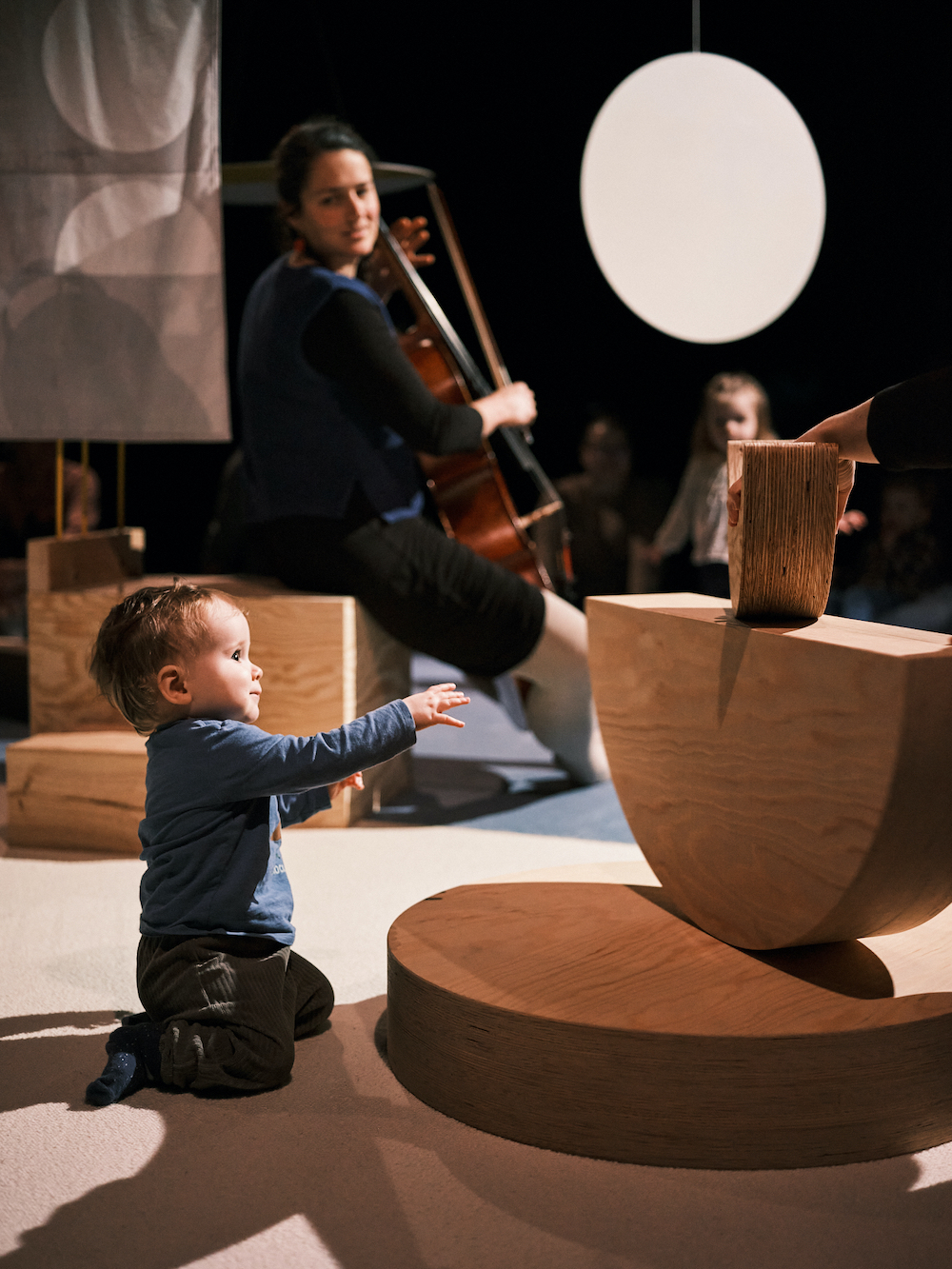 Moon Bird est une performance intimiste, née de la fascination pour la lune et ses multiples facettes. Sur scène, les trois musiciennes sont assises avec les enfants, tandis que le reste du public est disposé en cercle autour d’eux/elles.